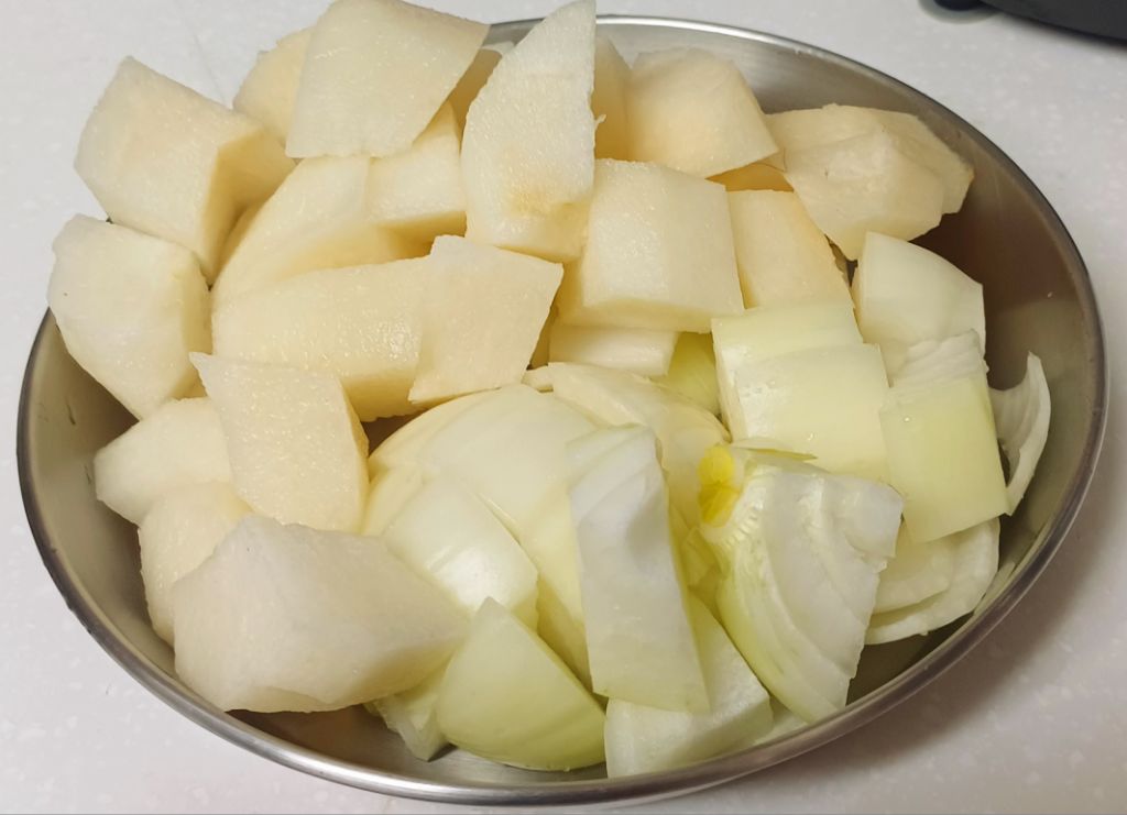 배 1개 양파 1개 마른 홍고추