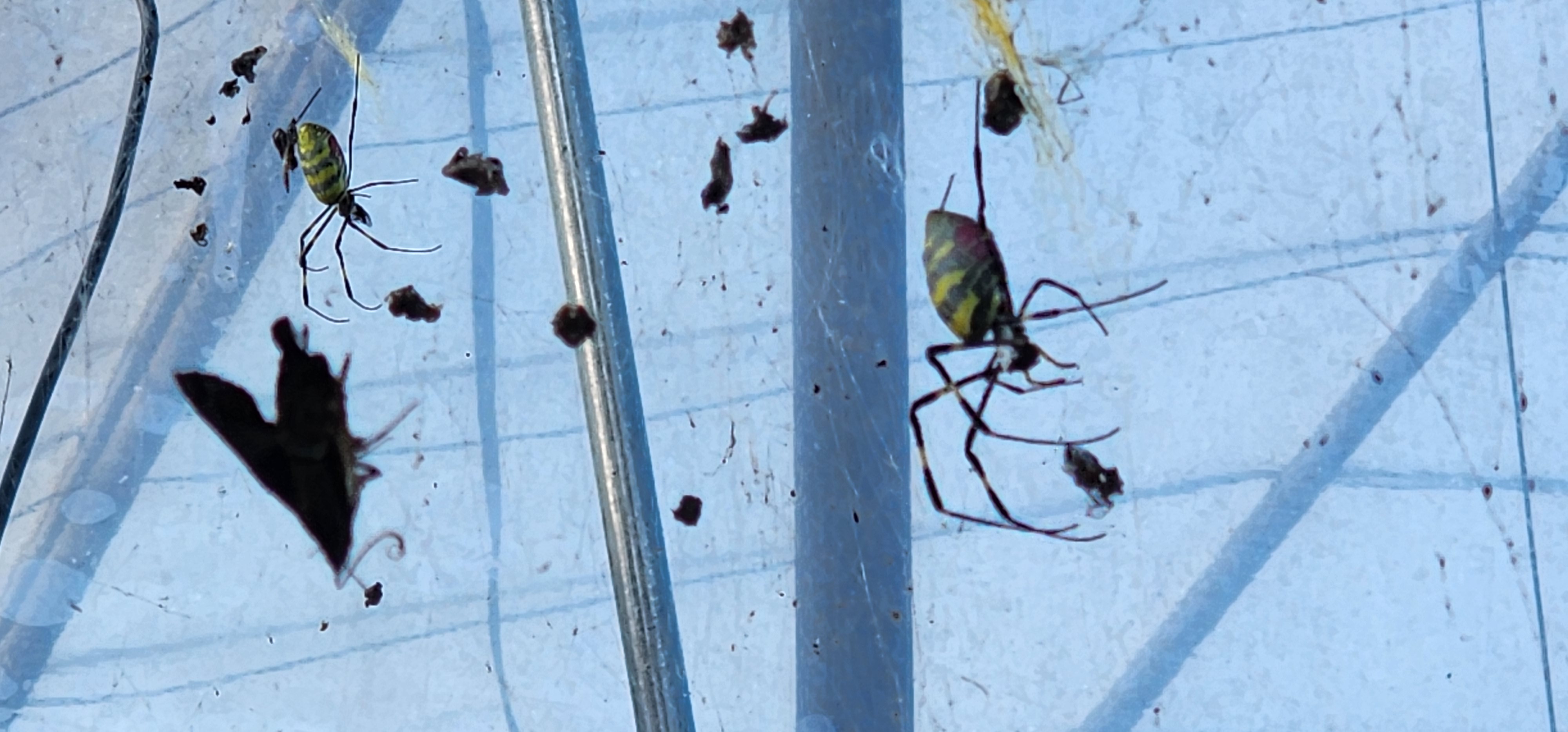 제법 큰 녀석 벌새가 거미그물 레이타 망에 걸려 드렸습니다.