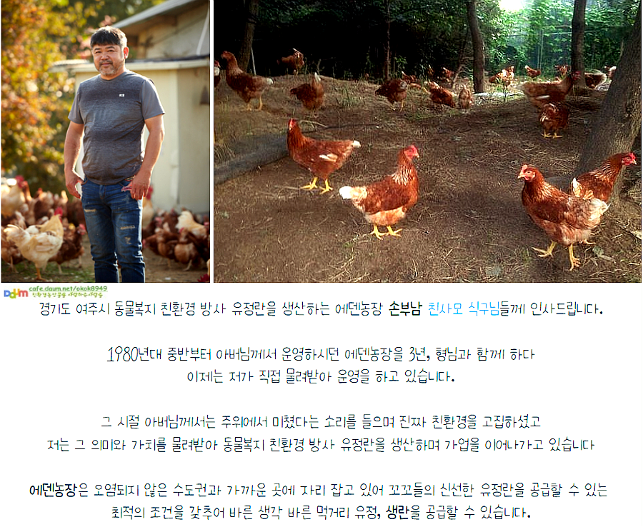 에덴농장 손부남님 유정란이 인지도가 가장 높습니다.