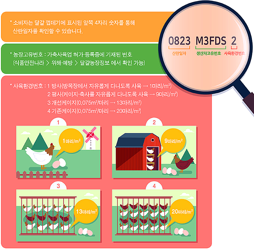 현재 적용 중인 난각 번호 끝자리의 의미는 사육환경을 의미합니다.
