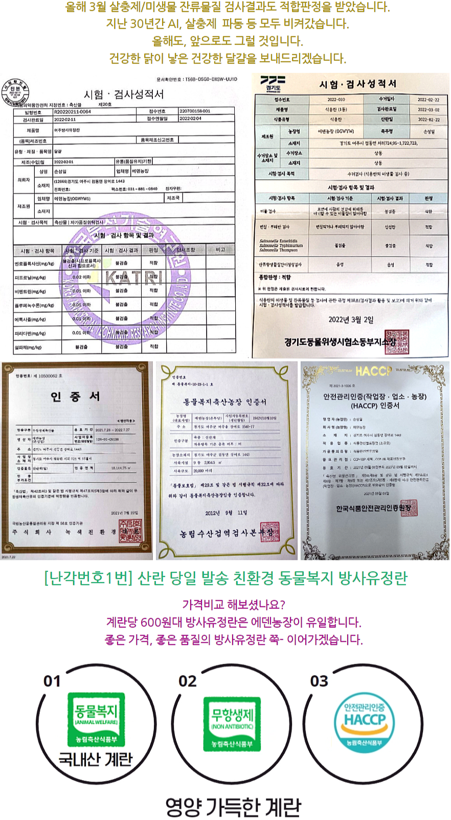| 동물복지 친환경 무항생제 유정란 친사모 판매가 | |||