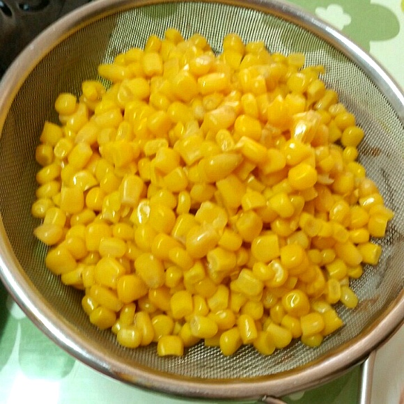 옥수수통조림은 체에 받여 물기를 빼줍니다