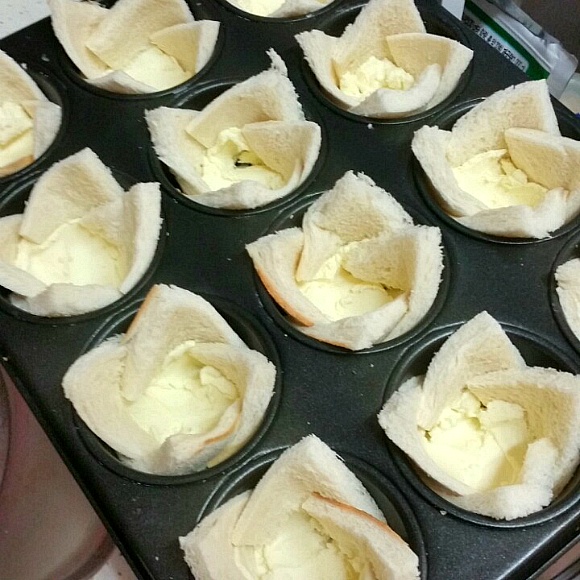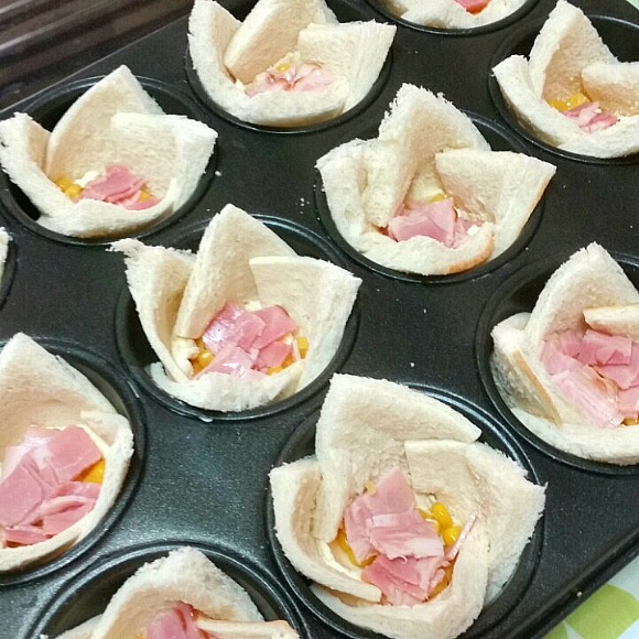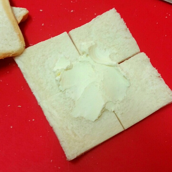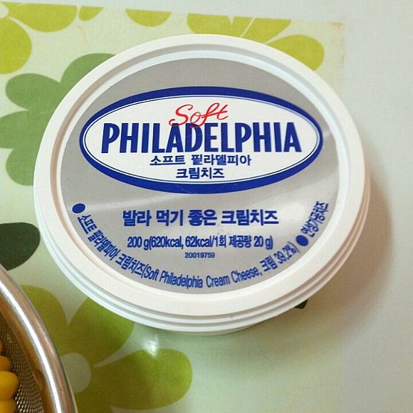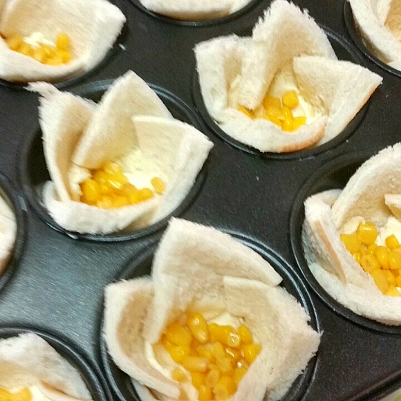 크림치즈 발라둔 식빵위로 물기빼둔 옥수수넣고