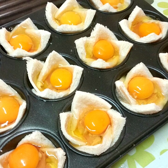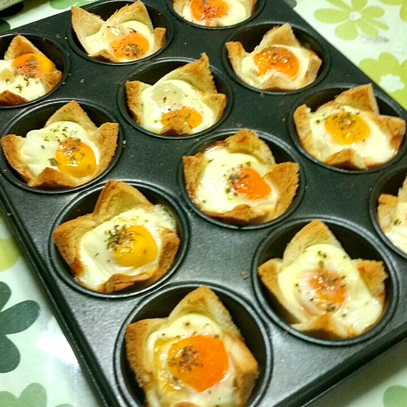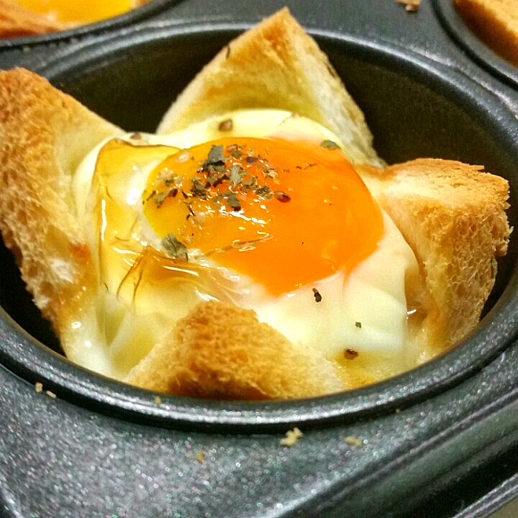 계란빵재료-식빵 계란 크림치즈(토마토소스도 좋아요)옥수수통조림 베이컨 파슬리가루 허브솔트