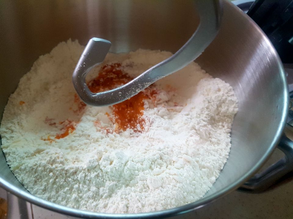 반죽기에 밀가루/계란/약간의 천일염/