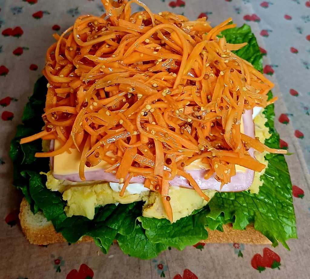당근라페 만들고 감자셀러드 만들어 샌드위치 넉넉 하게 만들어 주변 동료들과 먹으라고 푸짐하게 보냈습니다