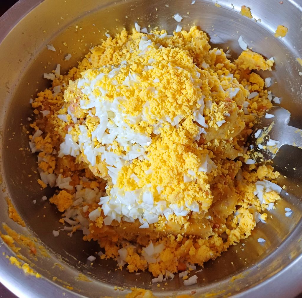 계란 4개 삶아 흰자는 잘게 썰어 넣구요