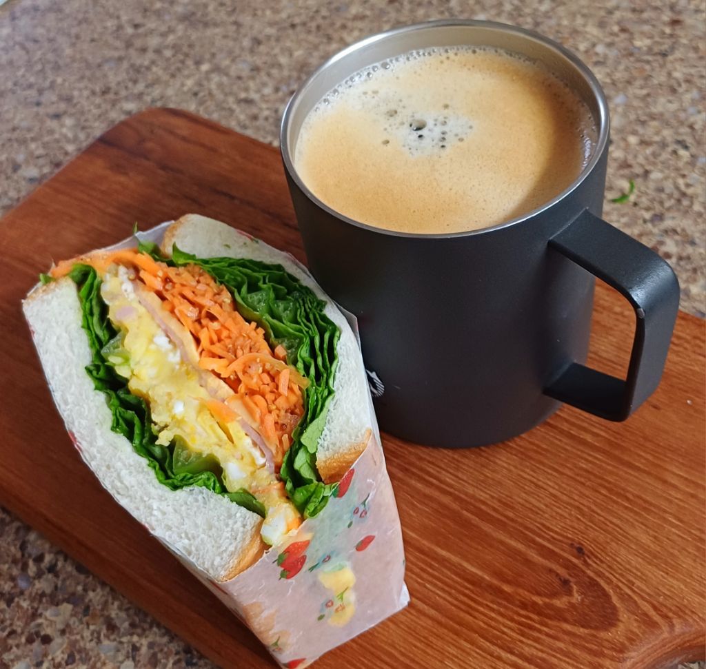 저는 당근라페 센드위치 만들어 커피랑 아침입니다