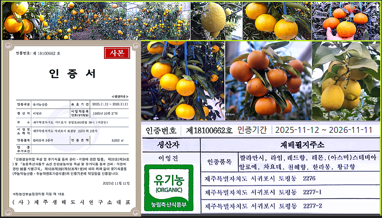 재 배하기 까다로운 유기농 인증정보 ㅡ 18100662호 과일 익는 속도가 늦습니다.
