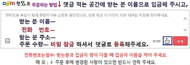 | 현금영수증 필요하신 분은 구매하시면서 댓글로 연락번호 남겨주세요. | |