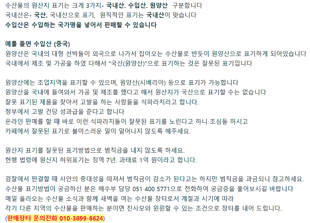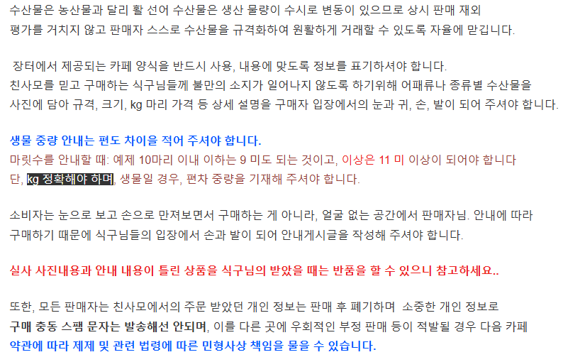 수산물 판매하시는 신토불이 농장 지기님.. 필독 공지방을 소홀히 하신 것 같아 알려 드립니다.