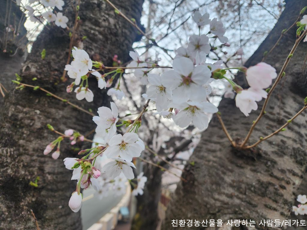 하루 이틀 사이에 벚꽃이 팡팡 터지고 있어요.