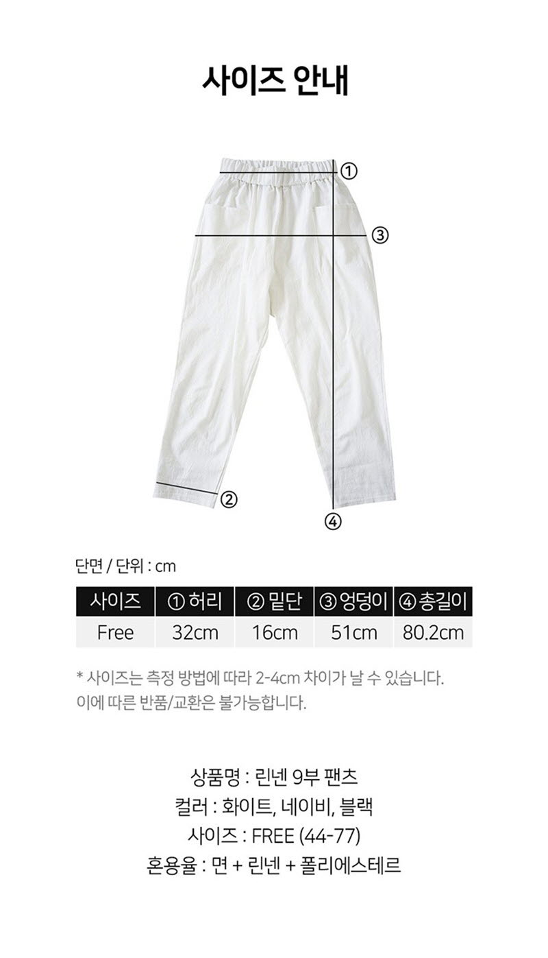 제품명 : 살랑살랑 캐주얼 린넨 9부 밴딩 팬츠 2세트