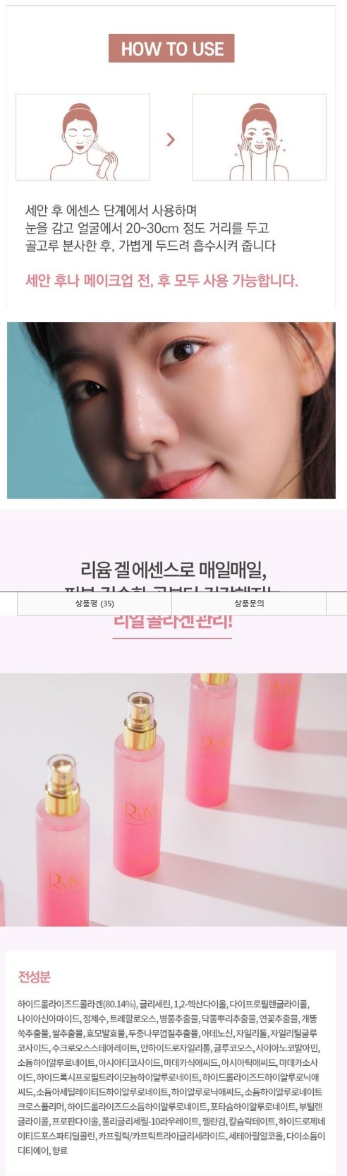 홈쇼핑 1차에서 19000개 판매를 기록한 리윰의 콜라겐겔 에센스미스트예요