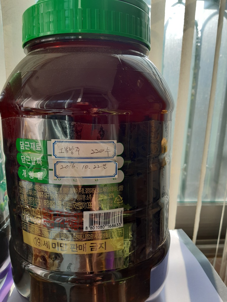 어느덧 3년하고 10여일만에 담금주 중 10.5 리터 한병을 개봉 하였답니다.