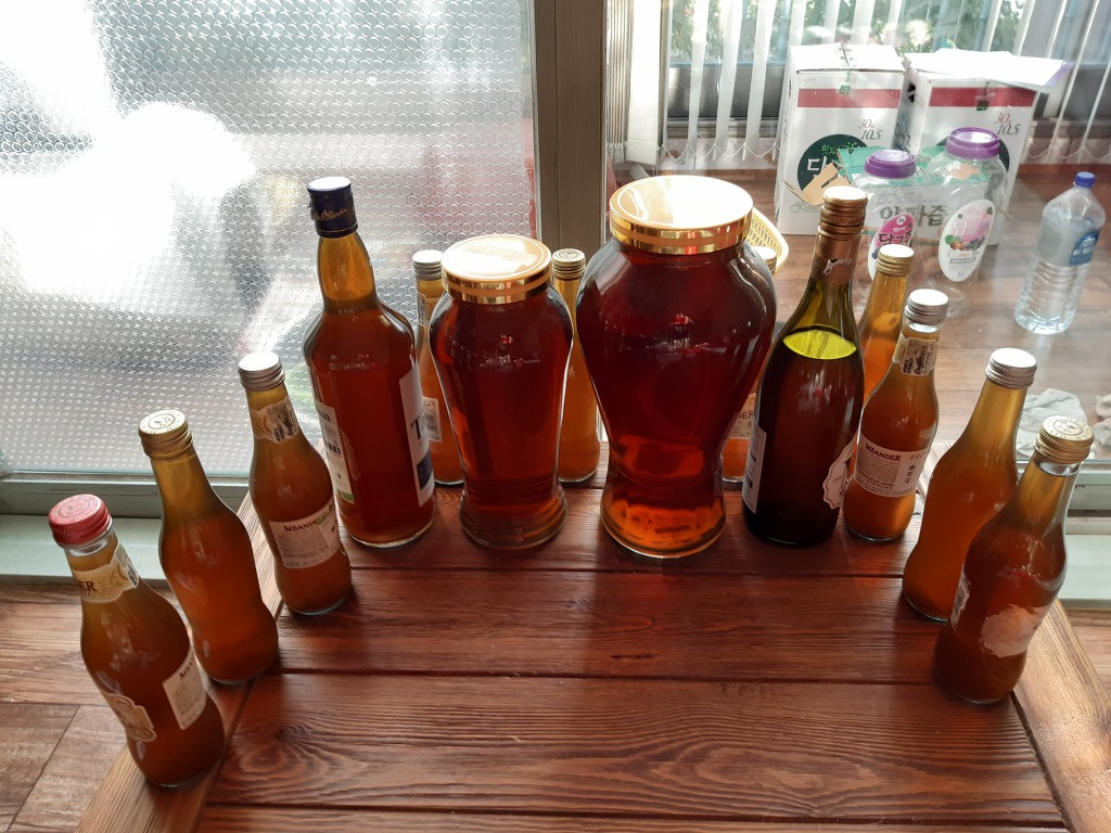 걸름을 마치고 작은 병으로 담아보니 8리터가 나왔네요.