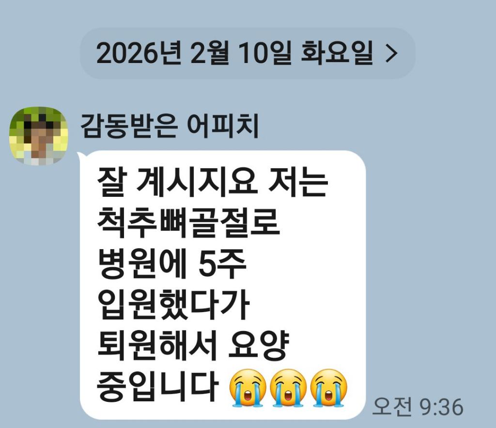 작성자모모 작성시간 26.02.12 이이고 ㅠㅠ 친구 사정도 중요하지만 웅찌님 본이 빨리 회복 하셨아 하는데요 너무 궁금해서 못 참고 연락 해보니 덜컹 아픈 소식에 내 마음 이 짠했는데
