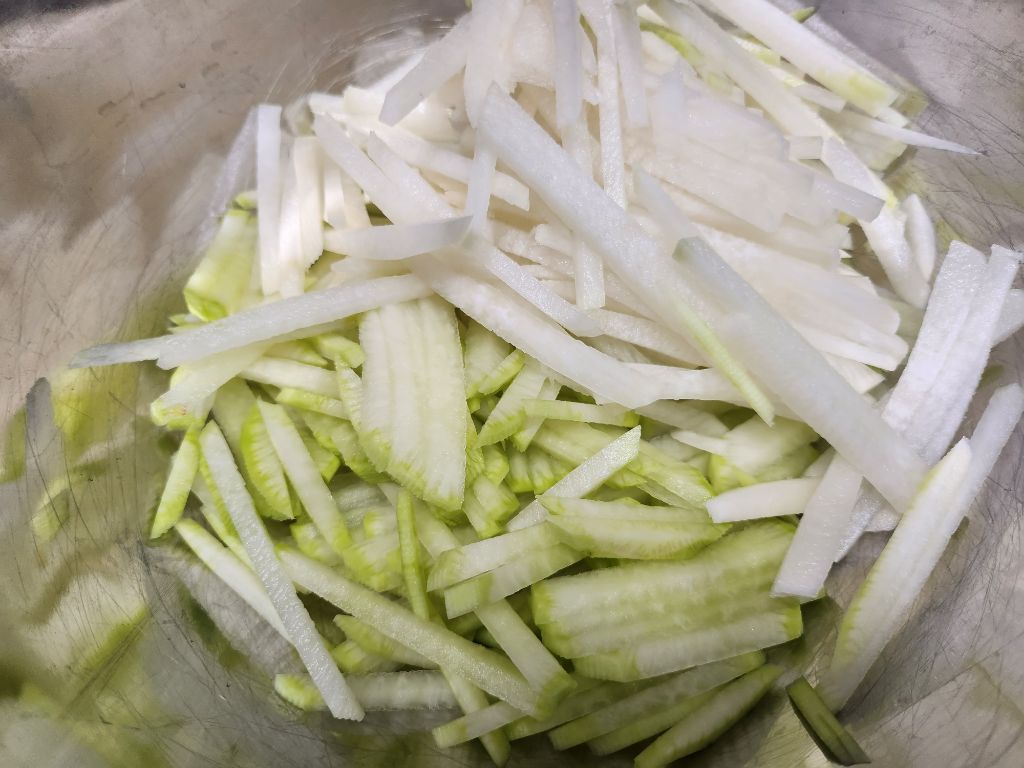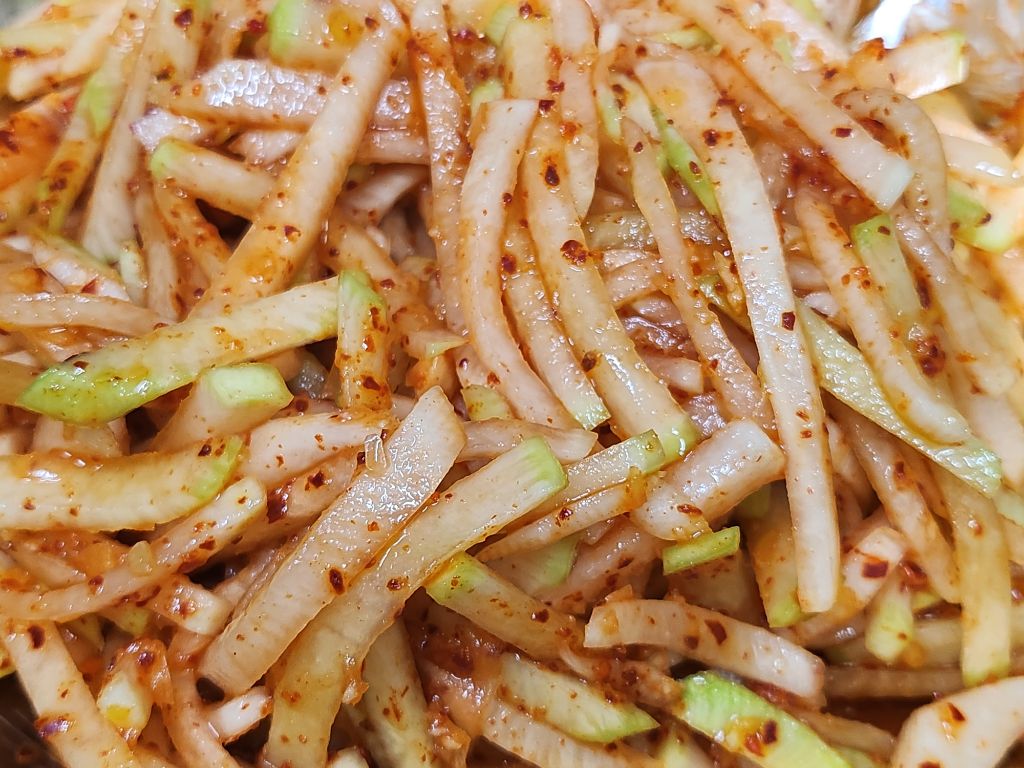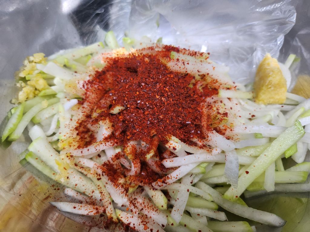무가 달아서 소금만 넣어서 무칩니다.