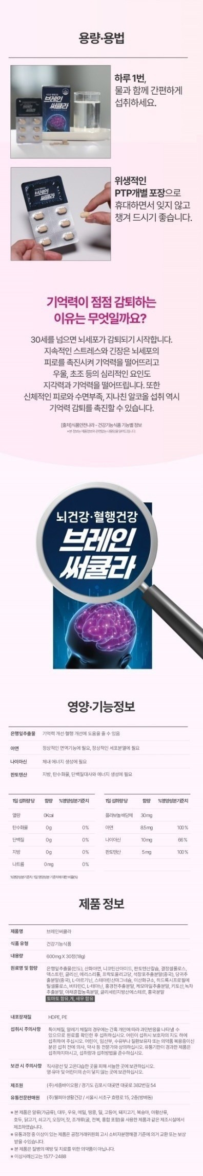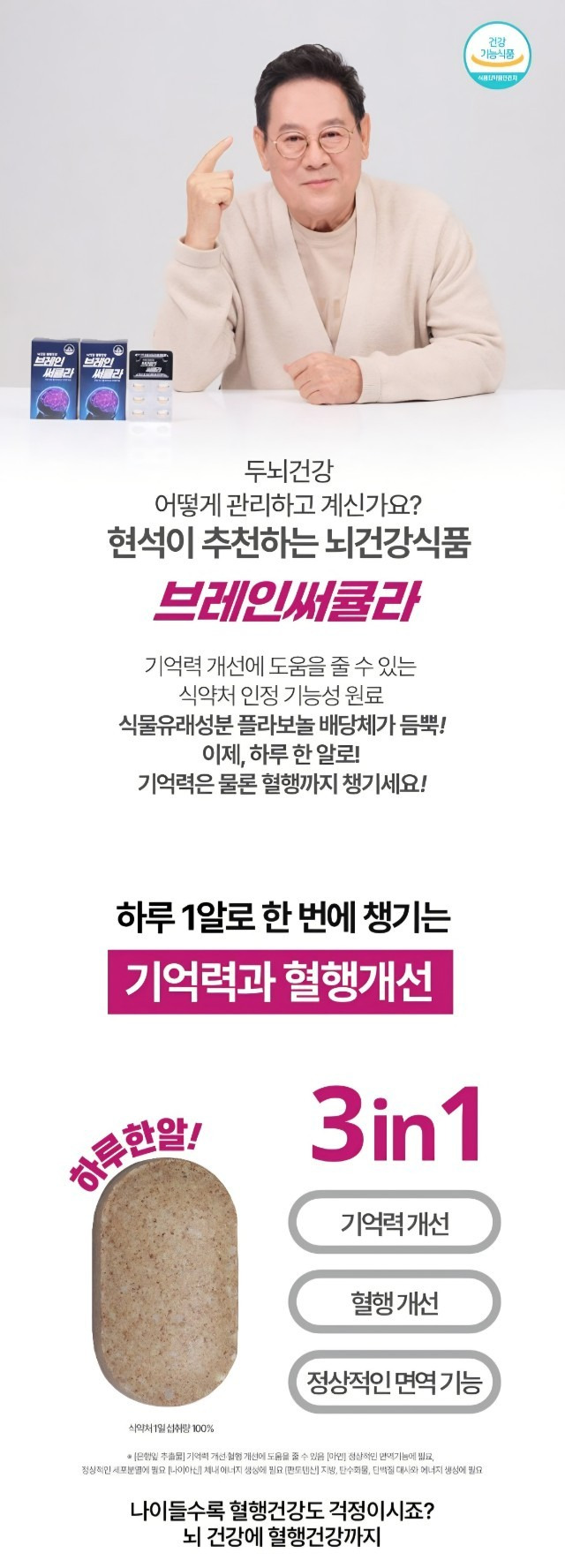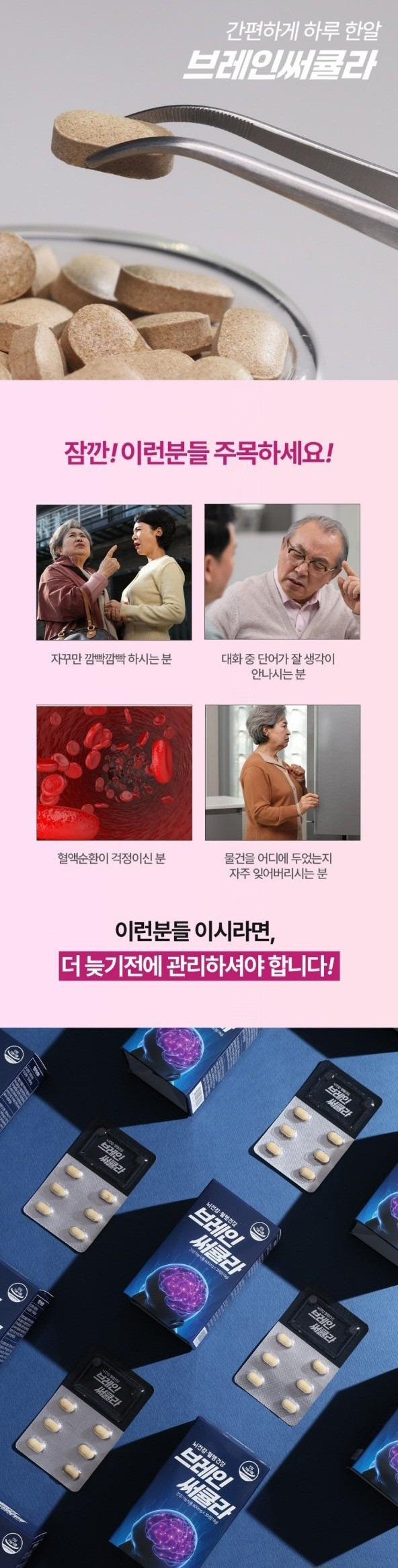 뇌건강을 쌩쌩하게! 홈쇼핑 브레인 써큘라 마지막 판매에요~ 남은수량 유통기한 임박으로 땡처리입니다. 동영상 한번씩 꼭 봐주세요~^^ 100세시대 꼭 필요한 관리 ~ 뇌관리^^ 몸건강도 중요하지만 뇌건강이 더 중요한것 같아요^^ 뇌는 한번 안좋아지면 회복이 정말힘들어요.. 자꾸 깜빡깜빡한다거나 단어가 잘 생각이 안난다거나 물건을 어디뒀는지 자꾸 까먹거나 혈액순환 걱정이 된다거나 이런게 걱정이시라면 브레인 써큘라 하루한알로 관리해보세요^^ 한박스에 30정들었는데요 하루한알 드시면되어요 기억력개선 혈액순환 면역기능까지 한알로 3가지를 챙길수있어요^^ 유통기한 26년1월30일 최저판매가 1박스 1개월분 4,000원 배송비3,500원 도서산간6,500원 |