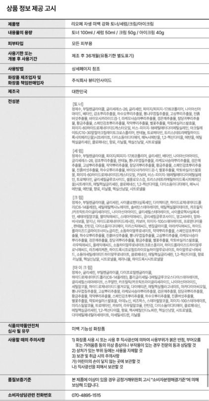 토너100ml / 세럼50ml / 크림50g / 아이크림 40g