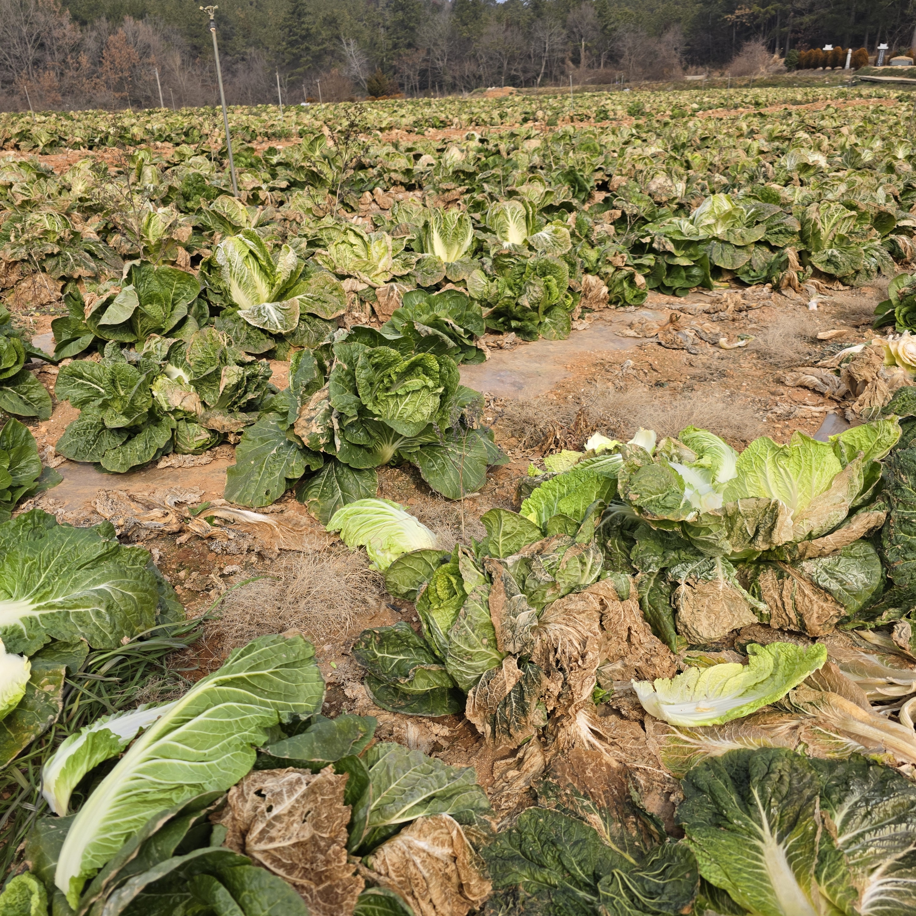 겨울바람에 배추잎이 마르고 배추윗부분이 추위로 말랐습니다