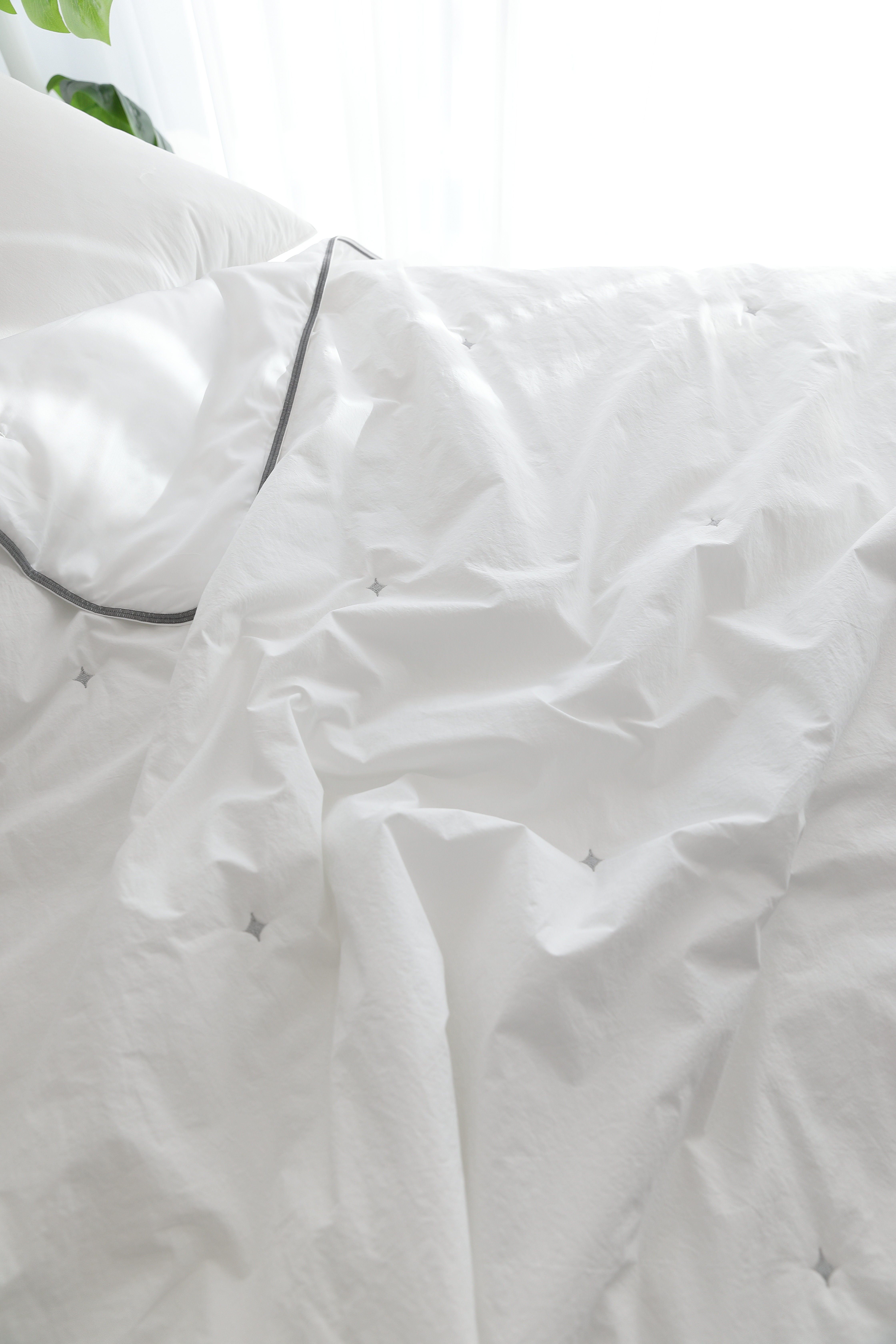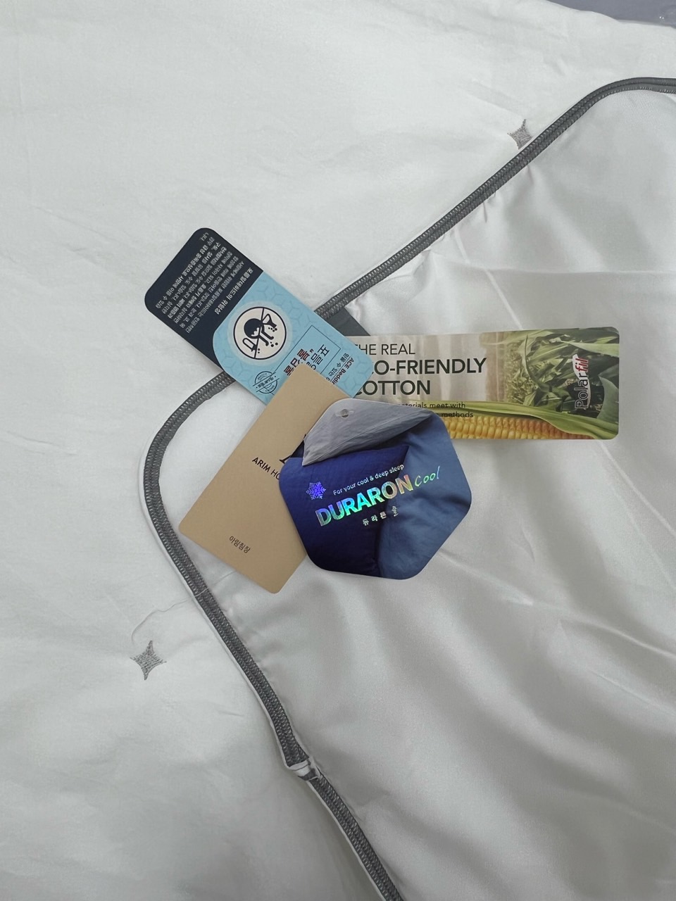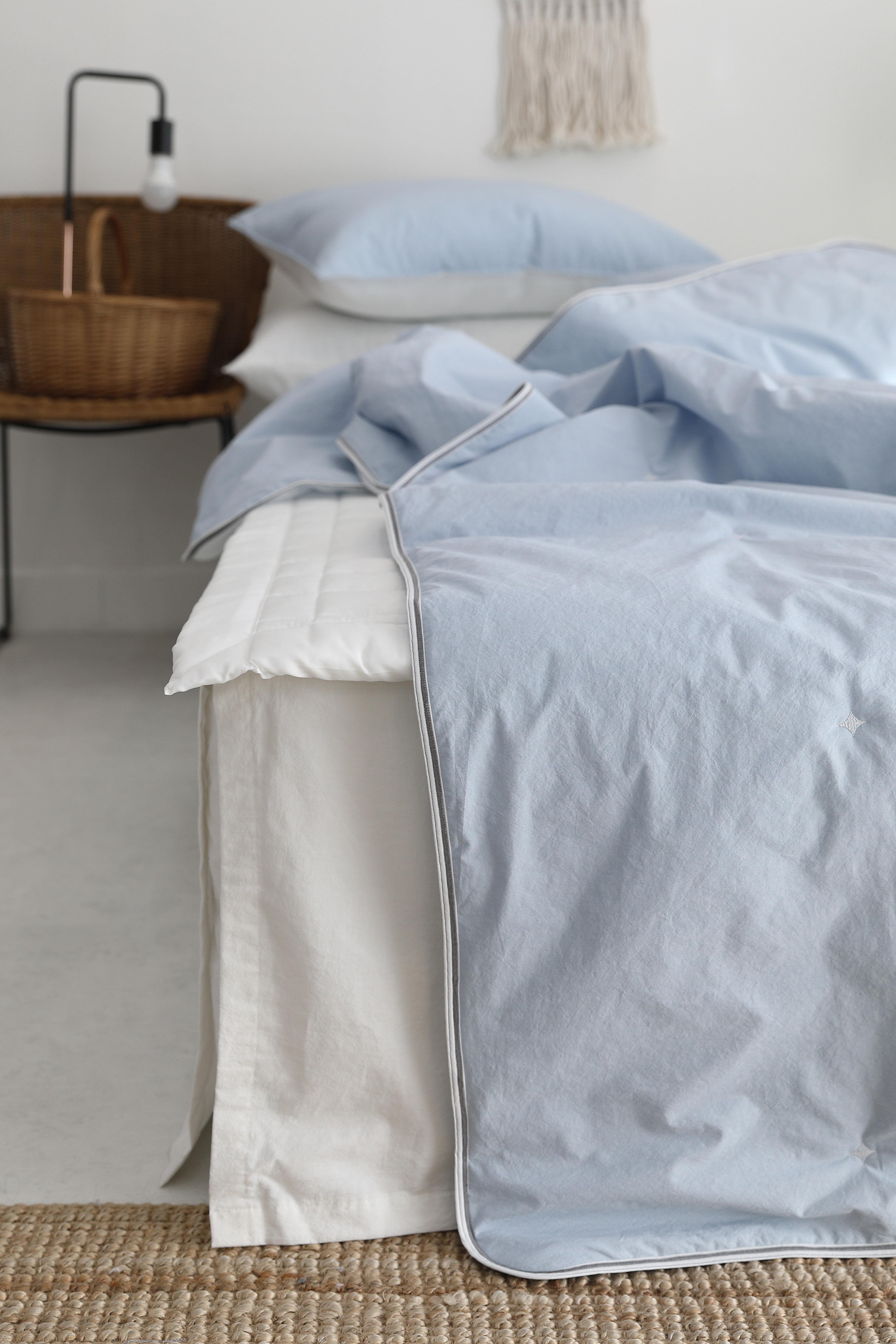 이불 윗판은 호텔베딩에 많이 사용하는 프리미엄 고밀도 순면 소재를 사용해