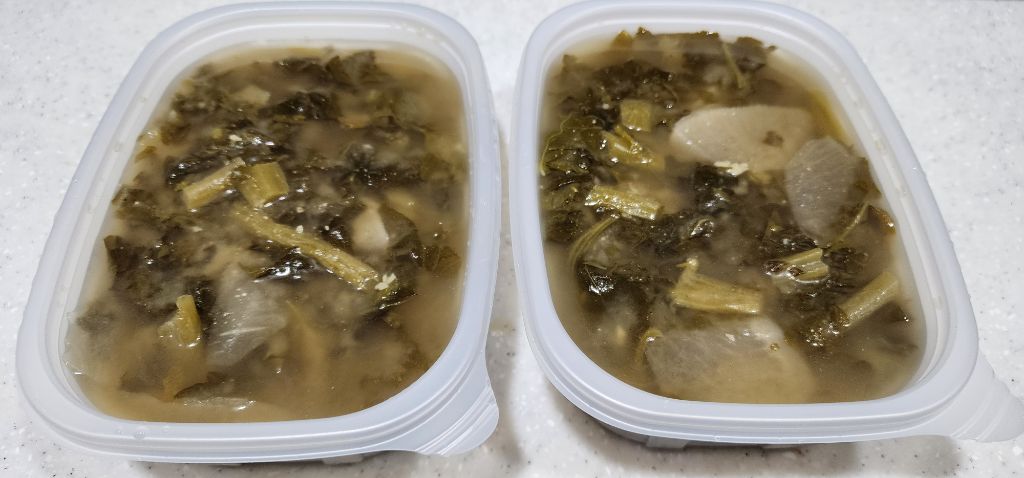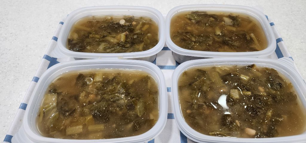 보내는 물품 : 국 6통(시래기국 2. 미역국2. 소고기국2). 귤잼1병, 반찬 조금