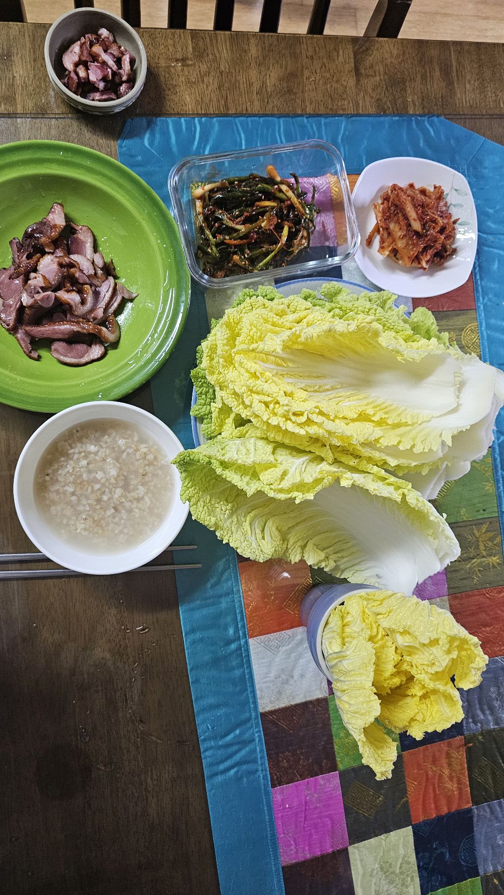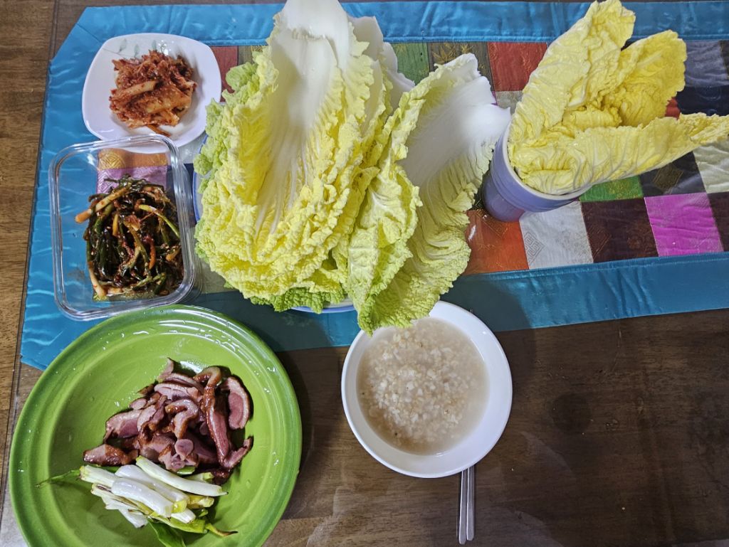 혼자 먹는 저녁인데 쌈배추가 있어 풍성합니다