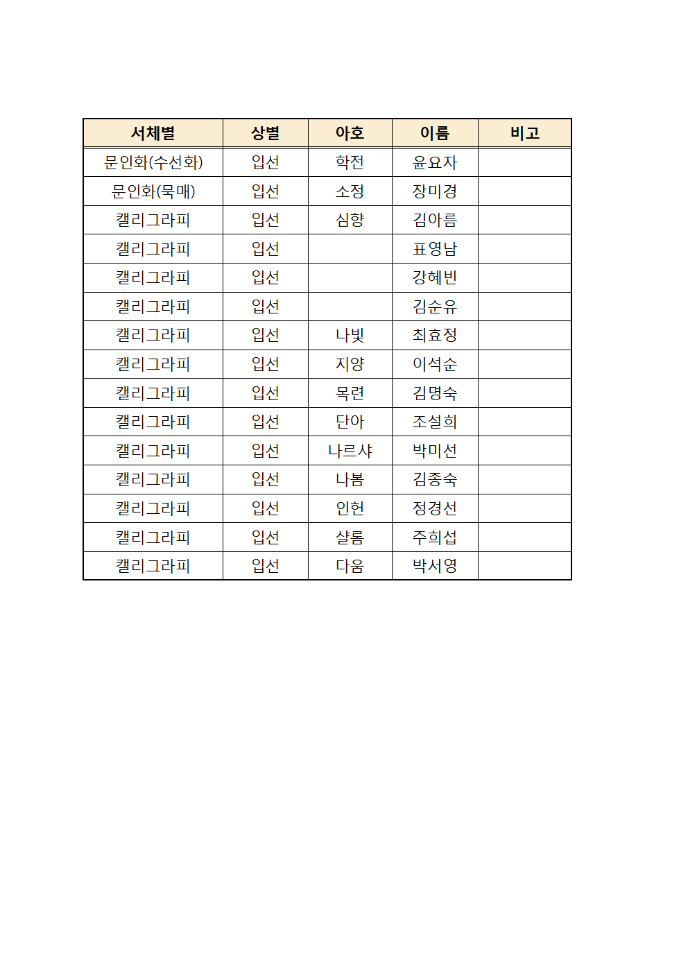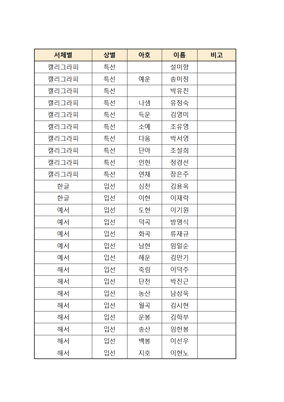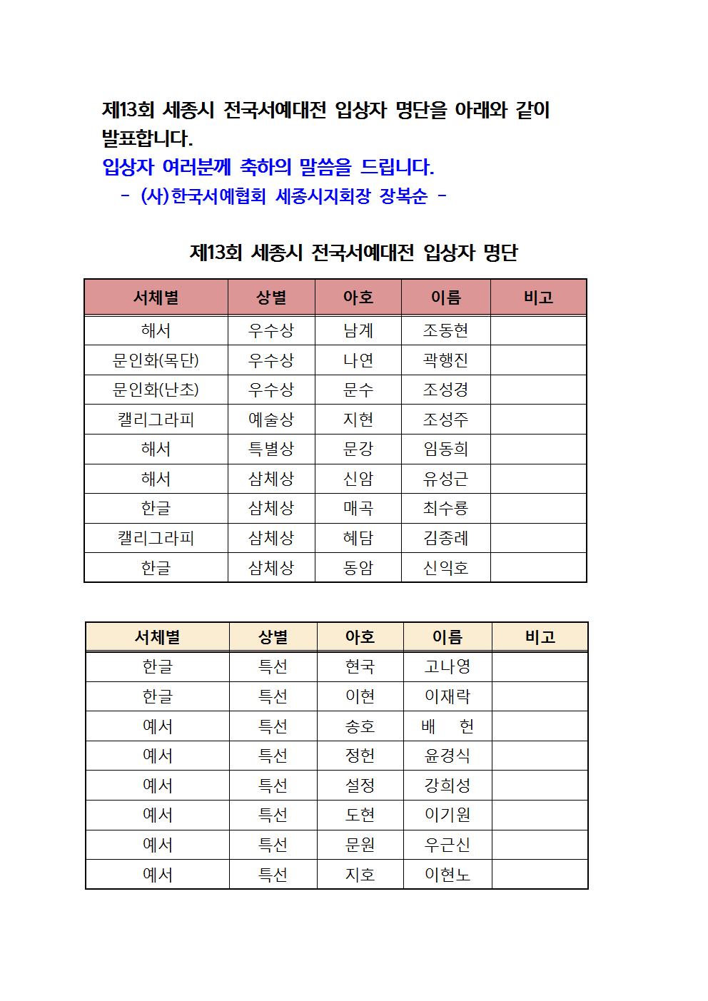 제13회 세종시 전국서예대전 입상자 명단 발표 작성자송천|작성시간24.08.01|조회수639 목록 댓글 0 글자크기 작게가 글자크기 크게가 다음검색 현재 게시글 추가 기능 열기 북마크 공유하기 신고 센터로 신고 댓글 댓글 0 댓글쓰기 답글쓰기 댓글 리스트