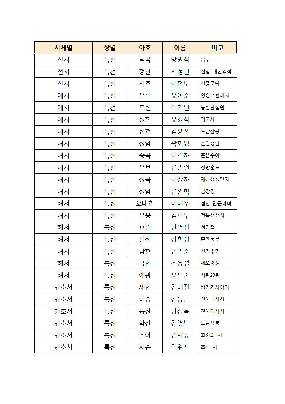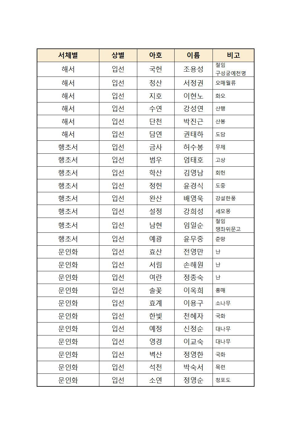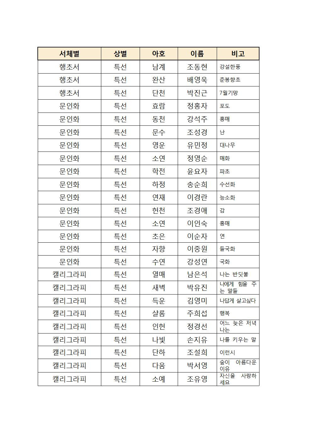 제14회 세종시 전국서예대전 입상자 명단 발표 작성자송천|작성시간25.07.11|조회수537 목록 댓글 0 글자크기 작게가 글자크기 크게가 다음검색 현재 게시글 추가 기능 열기 북마크 공유하기 신고 센터로 신고 댓글 댓글 0 댓글쓰기 답글쓰기 댓글 리스트