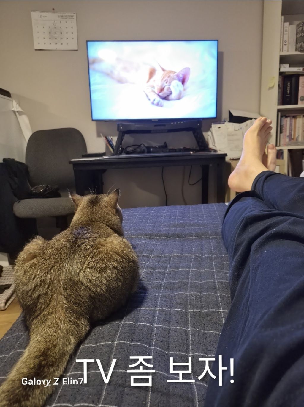 그래서 딸네 집에 와서 낮에는 있으라 해서 와이프는 출근을 하고 저는 딸아이 집에서 쇼파에 누워서 티브이를 보거나 하면서 지냈는데 그 때 한마리 고양이가 있었습니다.