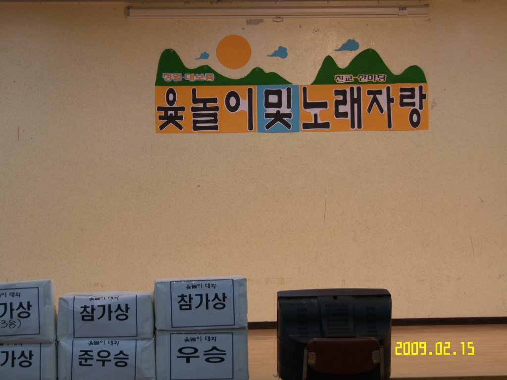 대보름 행사 사진 작성자김가롤로|작성시간09.02.17|조회수29 목록 댓글 0 글자크기 작게가 글자크기 크게가 다음검색 현재 게시글 추가 기능 열기 북마크 공유하기 신고 센터로 신고 댓글 댓글 0 댓글쓰기 댓글 리스트