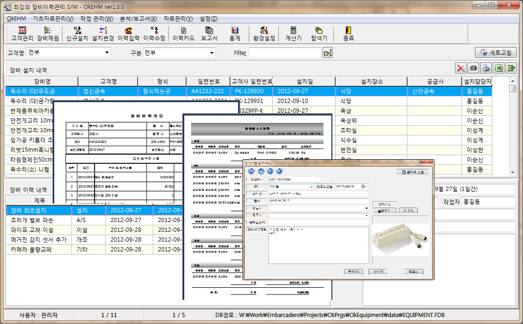 이번에 장비 판매업체 및 제조업체 에서 판매된 장비 A/S 이력관리를 할 수 있는 프로그램을 새로이 개발하여 출시 하였습니다.