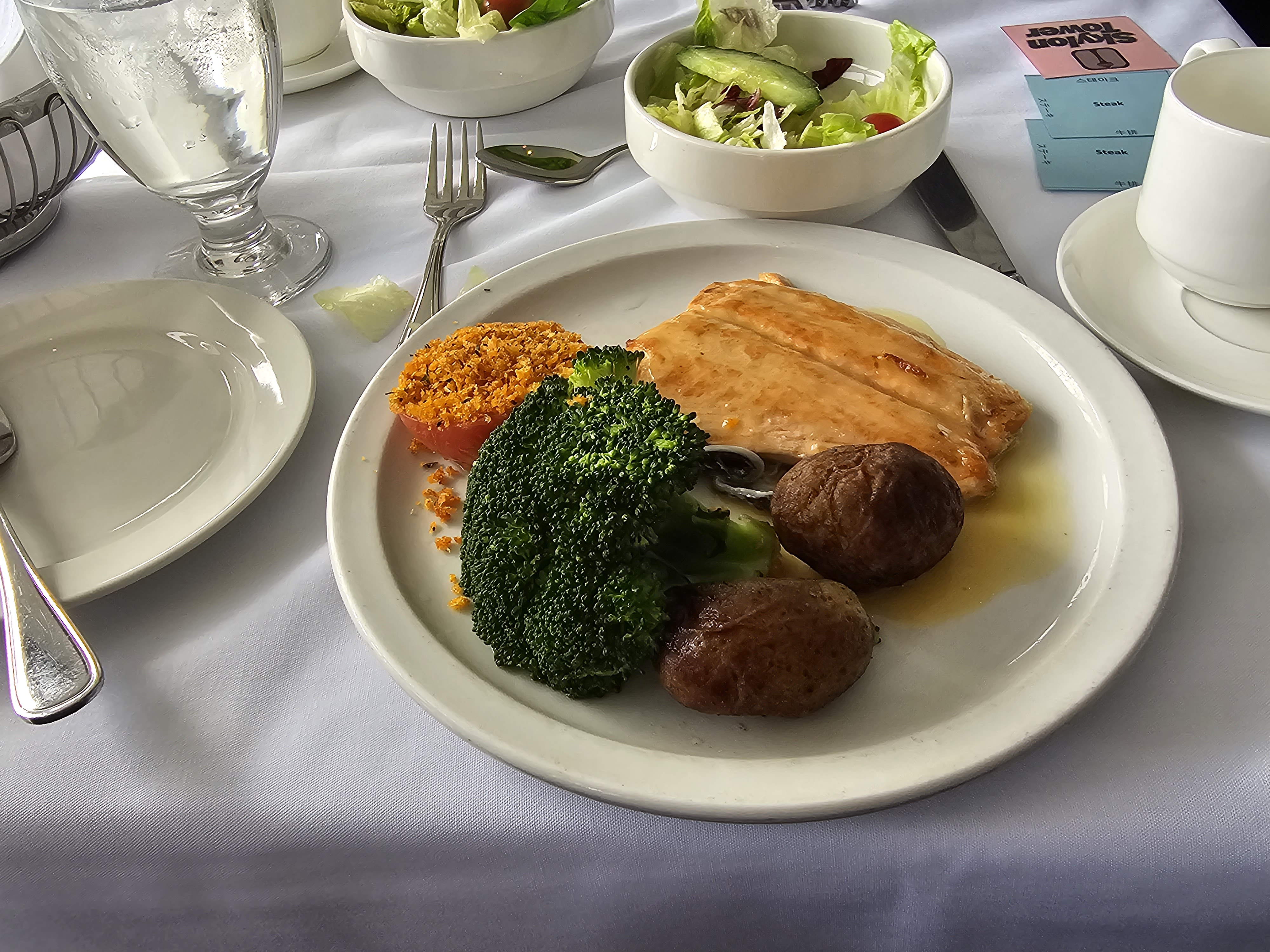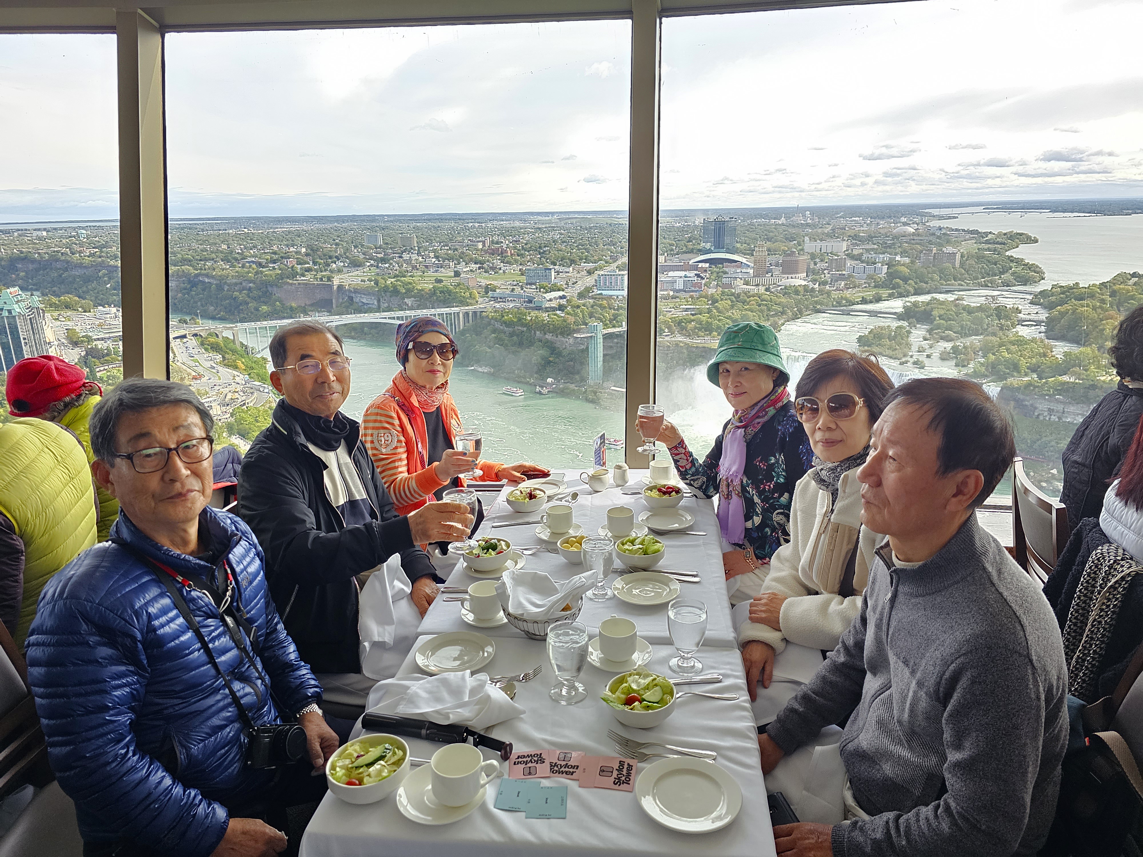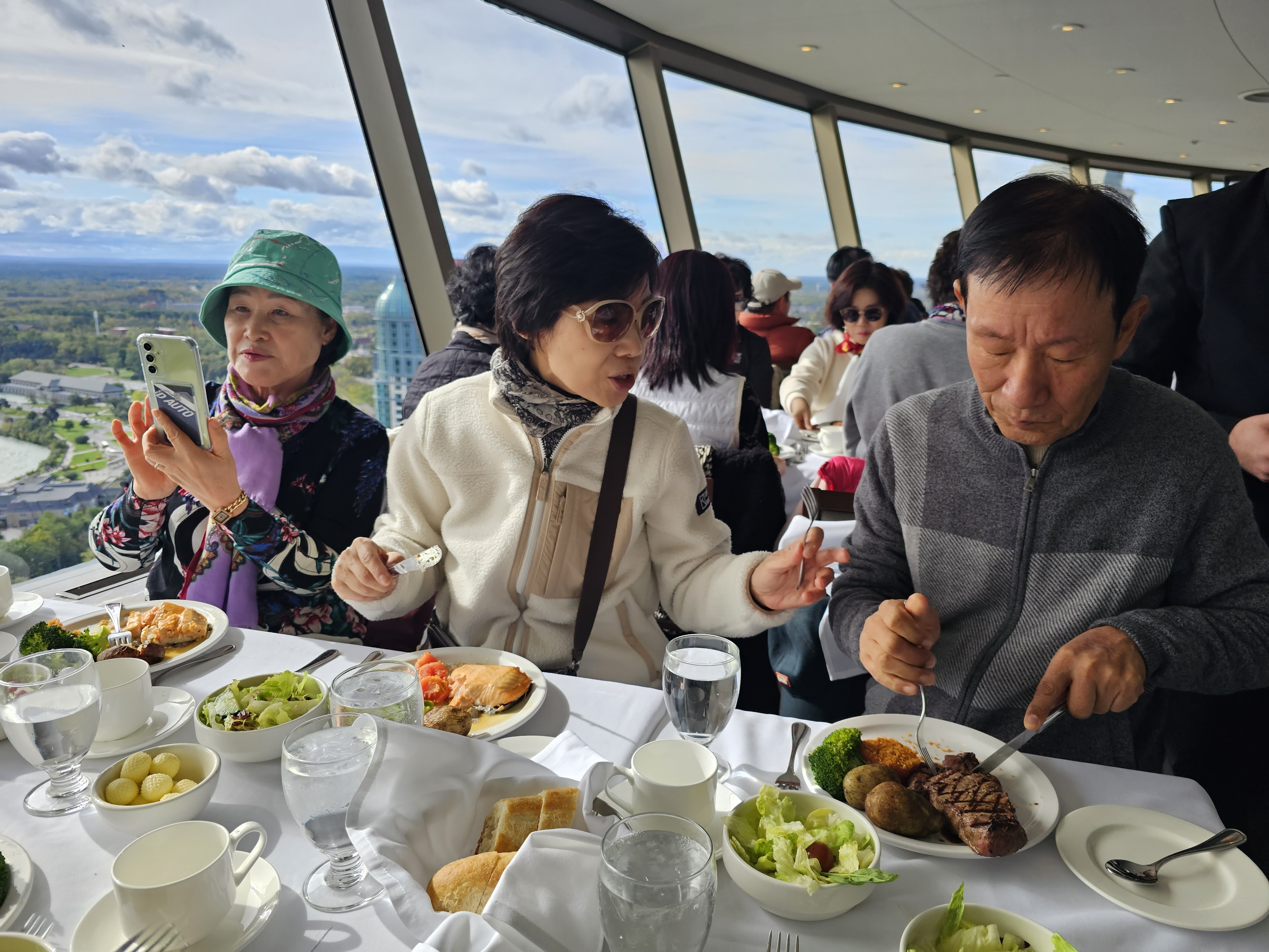 이제 자리에 앉아 360도 회전을 하며 스테이크와 연어 요리로 점심을 하고 나이아가라