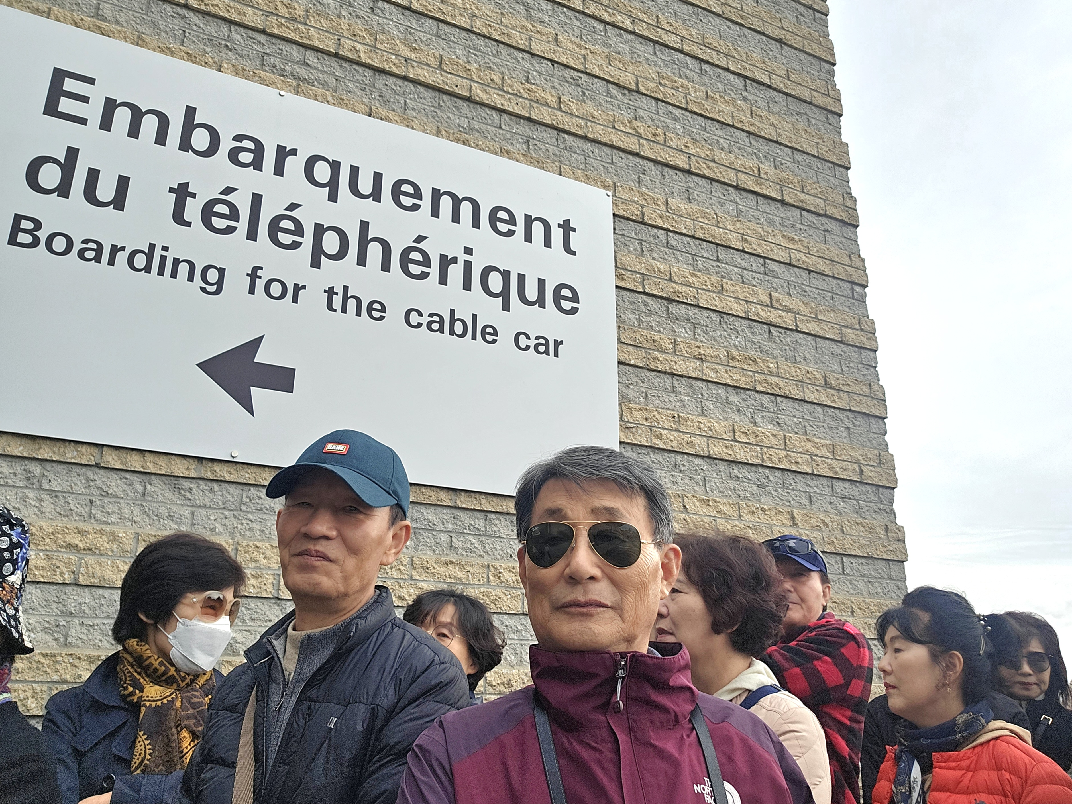 몽모랑시 폭포 정상 케이불카 정류장에서 내려 광장에서의 인증샷 이다.