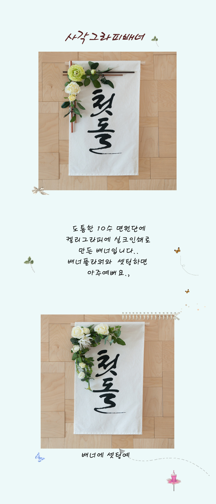 면 그라피 배너 작성자올레|작성시간18.10.15|조회수50 목록 댓글 0 글자크기 작게가 글자크기 크게가 캘리그라피 작가 글씨체를 실크인쇄로 제작한 배너입니다.가로40cm*세로65cm목봉 1개 포함입니다.30000원입니다.꽃 행잉은 별도입니다. 다음검색 현재 게시글 추가 기능 열기 북마크 공유하기 신고 센터로 신고 댓글 댓글 0 댓글쓰기 댓글 리스트