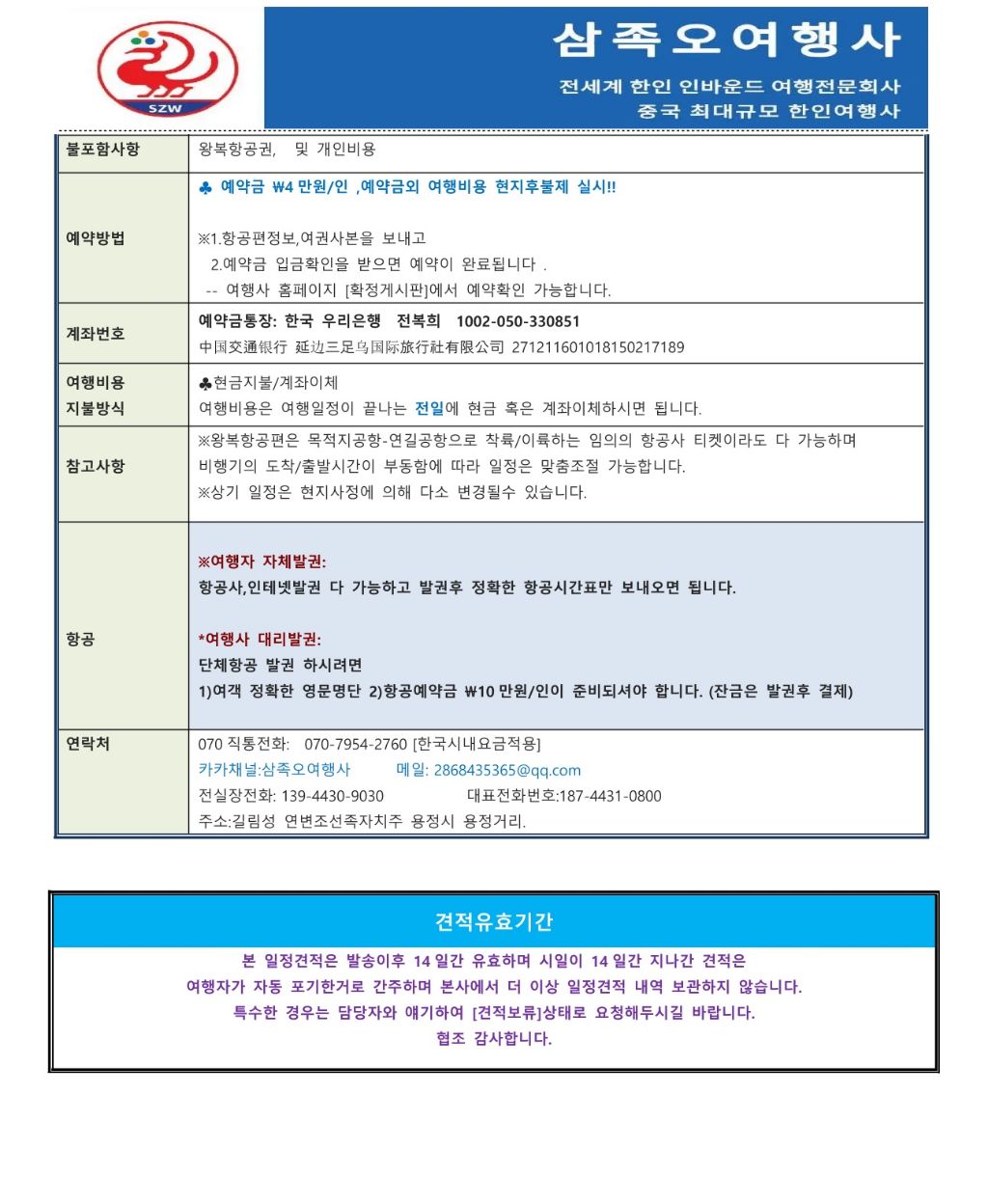 - 중국 현지 여행사와 직거래로 회원님들께 가장 적합한 일정으로 진행합니다