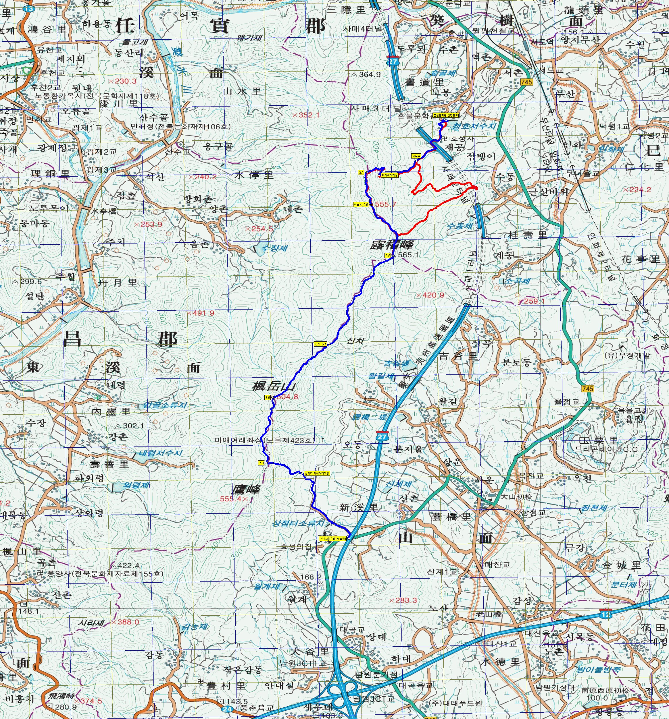 1팀: 신계리~천왕지맥(응봉 왕복)~풍악산~노적봉~닭벼슬봉~혼불문학관