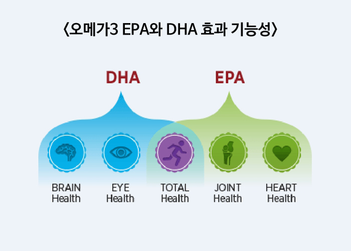오메가쓰리 EPA와 DHA는 각각 기능성이 있습니다.
