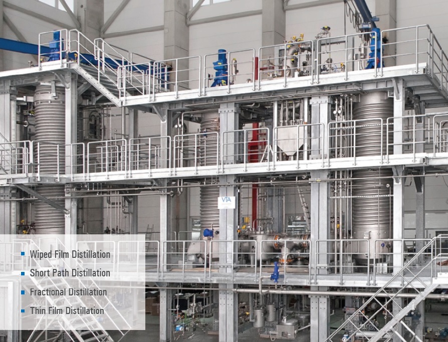 분자증류법은 오메가3 오일을 가열하여 각 지방산의 비열, 끓는 온도차이를 이용하여 증류탑에서 추출하는 방식이며