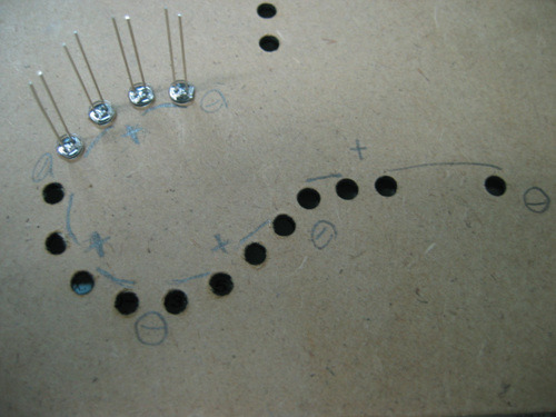 +는 +끼리 -는 -끼리 연결하기 쉽도록 LED를 배치 한겁니다.