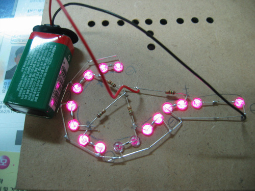 블루 LED 11개를 연결하는 법(글씨를 표현할려면 더 많이 필요하지만 방법만 아시면 됩니다.)