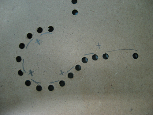물음표 모양으로 5mm 드릴을 이용해서 뚫습니다.