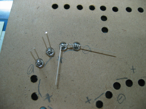 4set가 된 LED를 병렬로(+는 +끼리, -는 -끼리 연결하고 건전지를 연결하면 됩니다.
