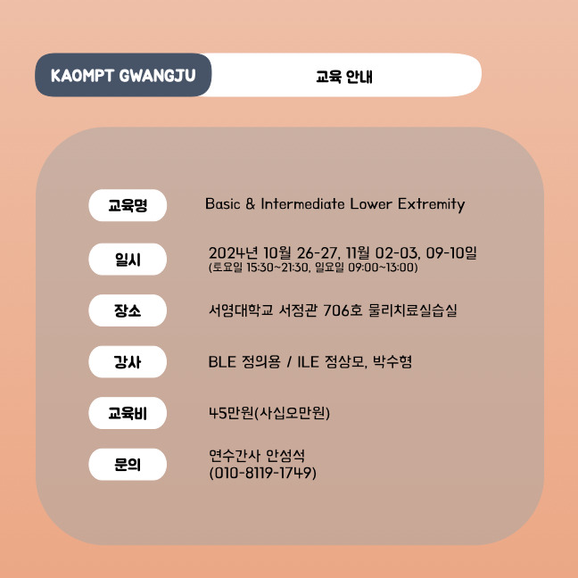 24년 KAOMPT 광주시회 Basic & Intermidate Course of Lower Extremity 개최안내