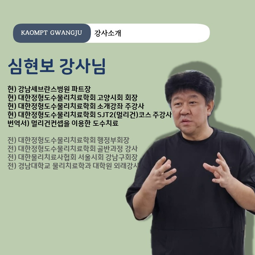 현) 대한정형도수물리치료학회 소개강좌 주강사