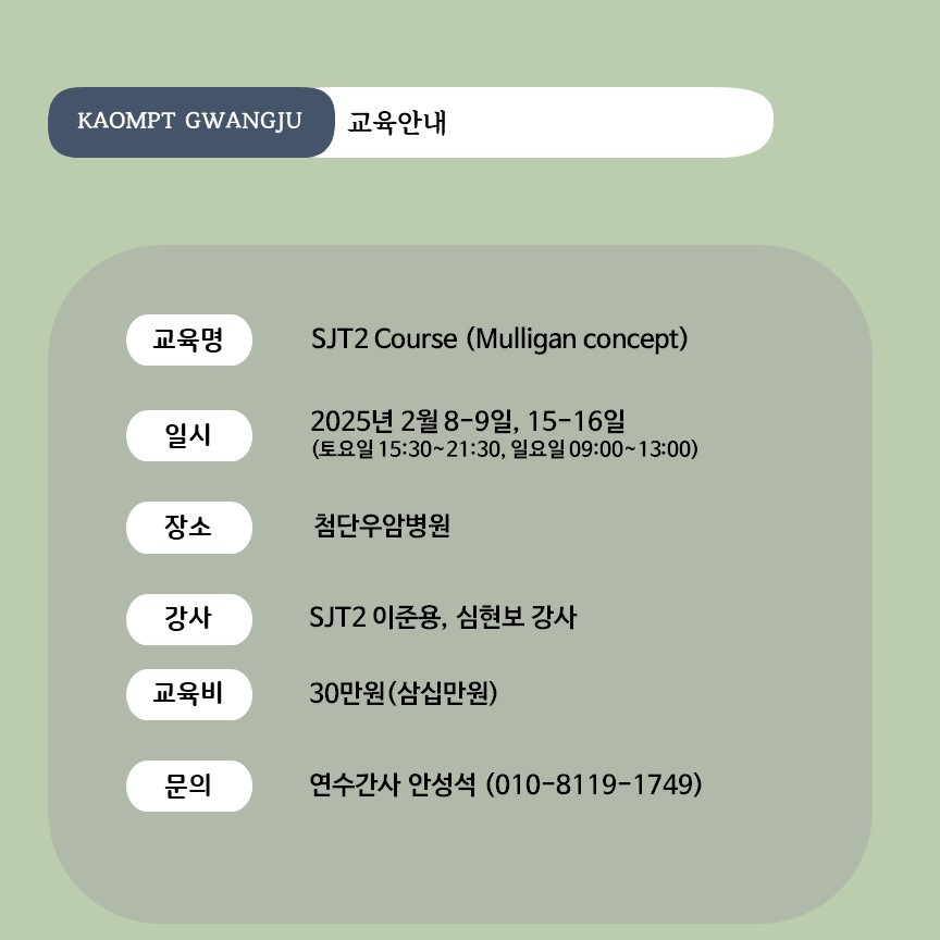 대한정형도수물리치료학회(KAOMPT) 광주시회에서는