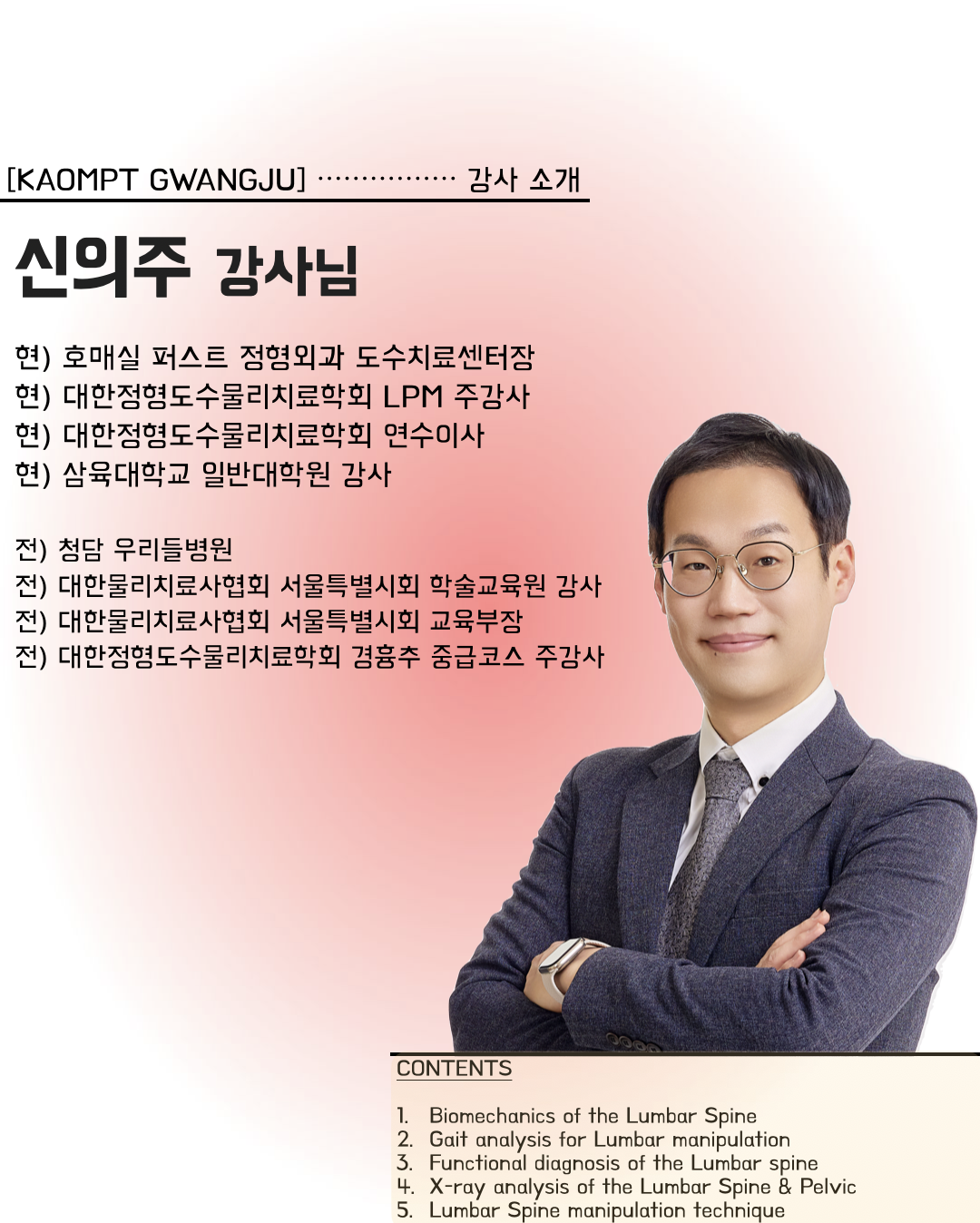 전) 대한정형도수물리치료학회 경흉추 중급코스 주강사