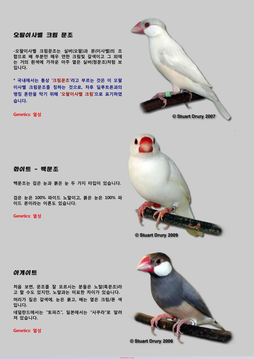 문조를 키우다보니 문조 종류에 관심이 많아서 이리 저리 자료를 찾아서 옮겨봤습니다.