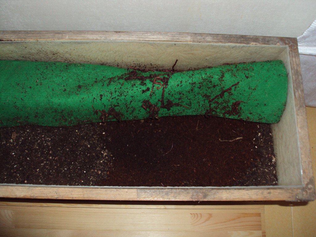 흙은 진흙을 좋아하지만 통기성이 있어야 하므로 톱밥이나 피트모스(옥션에 보면 달팽이 톱밥이라고 팝니다.)를 좀 섞어주면 좋습니다. 통의 반이나 2/3 정도만 버무린 흙을 깔아주고 지렁이를 넣어주면 됩니다. 그 위에 적은 수건이나 신문지 찢은 것 등을 이용하여 덮어주시고 통의 뚜껑을 덮어야 합니다.